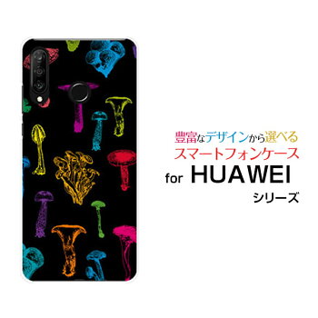 HUAWEI P30 lite Premium [HWV33]ファーウェイ ピーサーティ ライト プレミアムauオリジナル デザインスマホ カバー ケース ハード TPU ソフト ケースカラフルキノコ(ブラック)